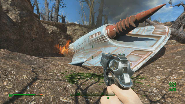 Fallout 3 had one, now Fallout 4 has one. UFOs seem to be a common thing in the wastelands... maybe the world powers should have focused on fighting these guys instead of each other! You'll find this baby north of the ruins of Somerville. There's also a cave nearby. Follow the green goo for a little surprise.